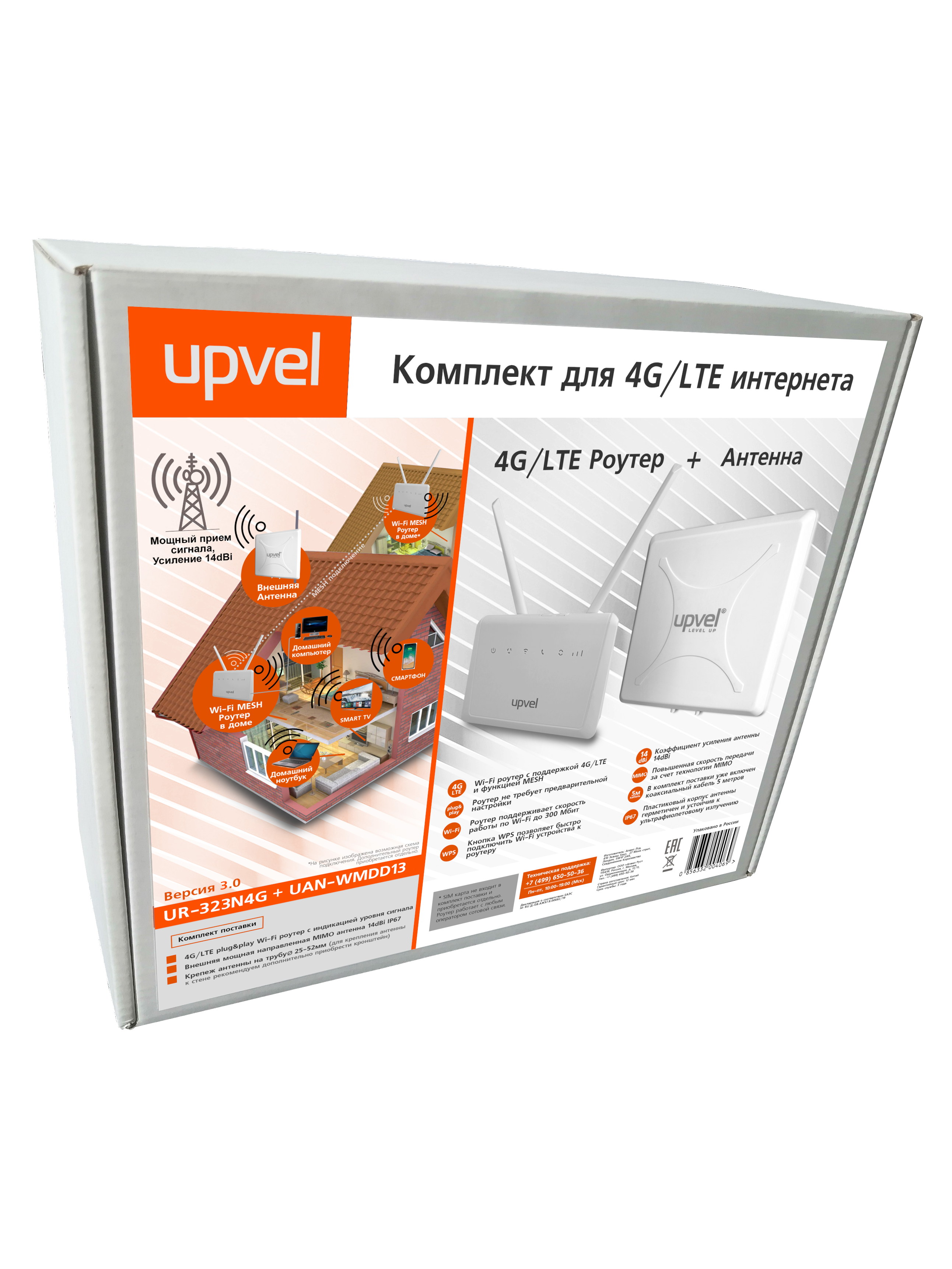 The kit includes UR-736N4GF 4G LTE 300Mbps Wi-Fi router compliant with 802.11n standard and UAN-WMDD13.v2 14dBi external antenna.